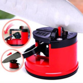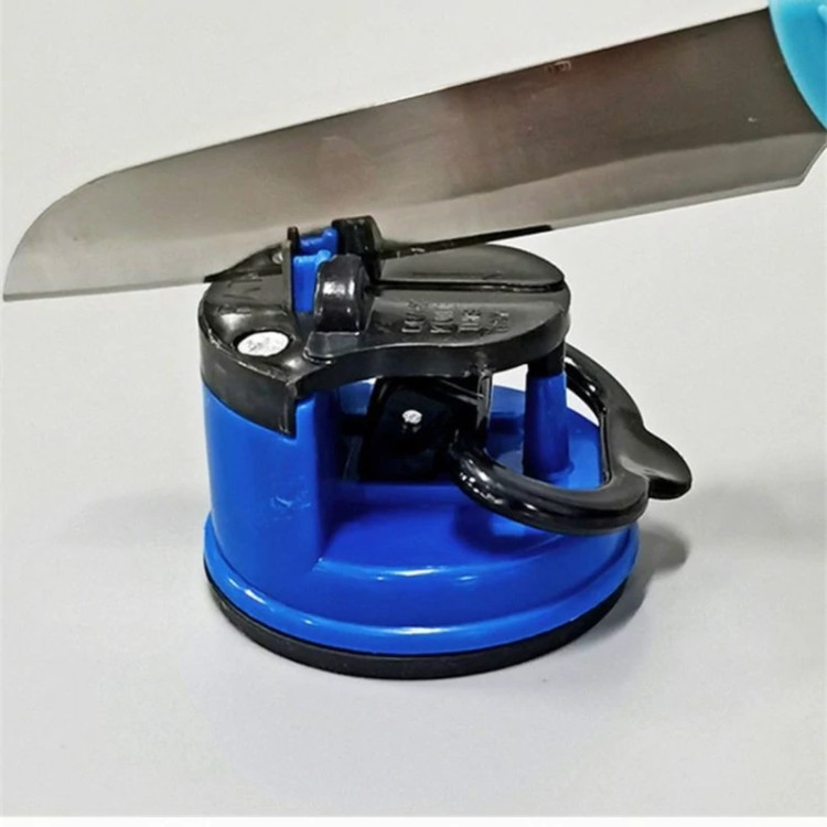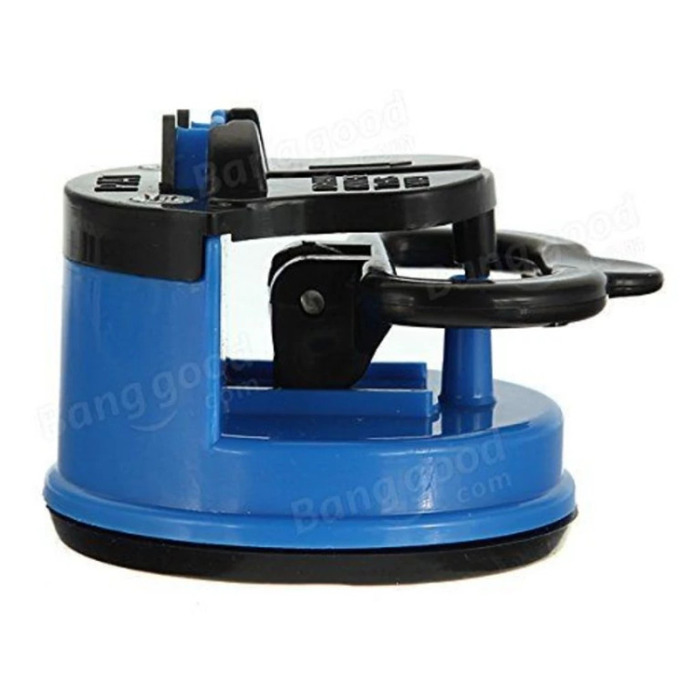 چاقو تیزکن الماسی با کف مکنده را روی محلی صاف و سیقلی مثل شیشه قرار داده و اهرم آن را رو به پایین فشار داده تا چاقو تیز کن بصورت محکم به میز بچسبد. سپس چاقو را در محل نشان داده شده قرار داده و در جهت فلش روی دستگاه بکشید. بعد از این که چهار بار عمل کشیدن چاقو را انجام دادید، چاقوی شما تیز تیز خواهد شد. استفاده از این چاقو تیز کن نیاز به مهارت خاصی ندارد و همه افراد میتوانند به راحتی از آن در هر مکانی استفاده کنند.