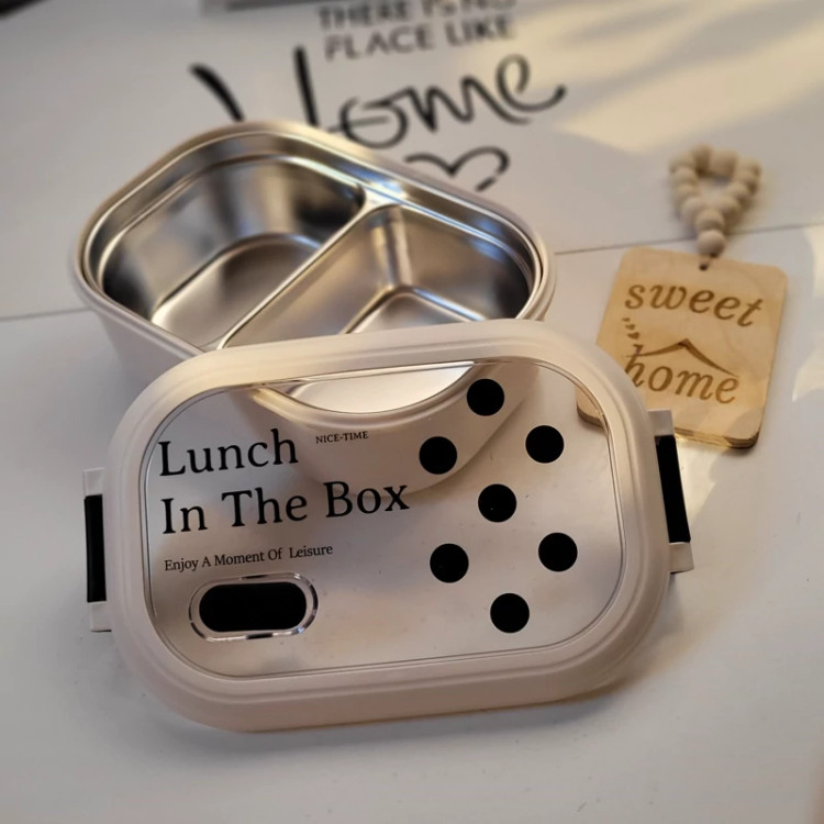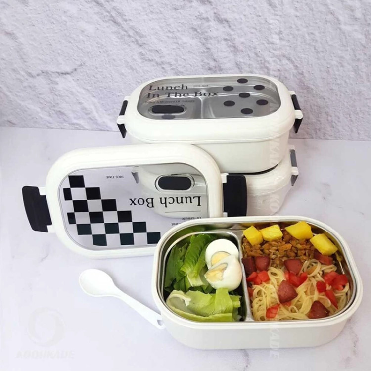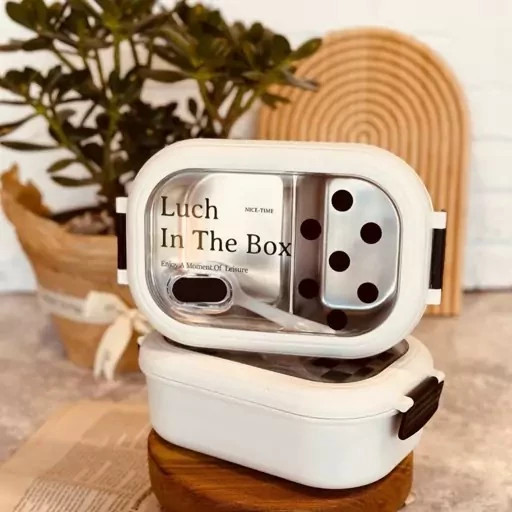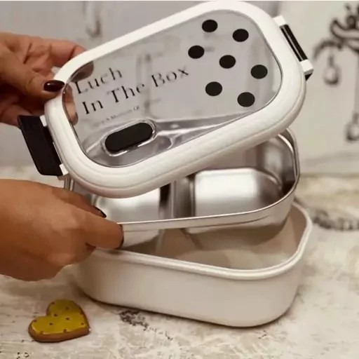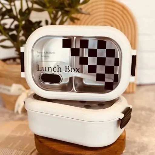 ظرف غذای استیل مدل لانچ باکس شطرنجی وارداتی همراه با سوپاپ هوا