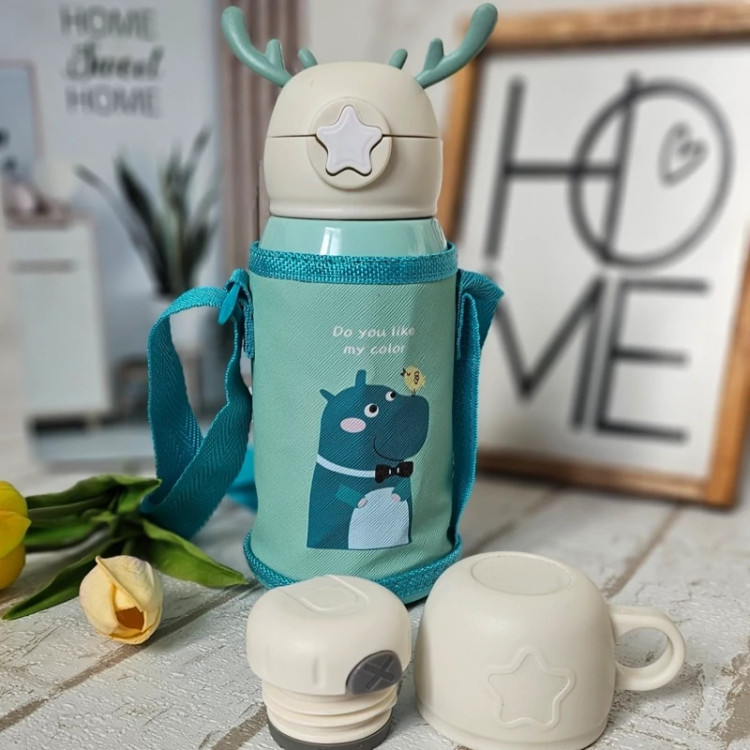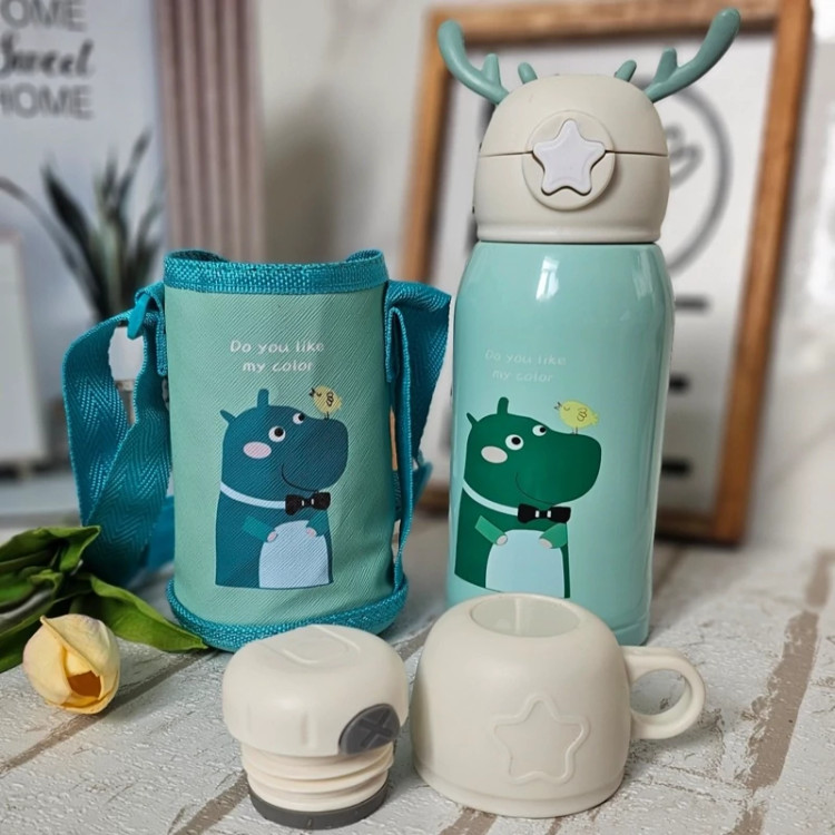 🌱قمقمه استیل وارداتی کیفیت عالی دو سر (درب فلاسکی و نی دار ) گنجایش ۵۰۰ میل هم برای نوشیدنی های سرد هم برای نوشیدنی های گرم جنس استیل دوجداره ۳۱۶ کاور دار (کاور زیپی) زمانی که از درب فلاسک استفاده میکنید 😍 شاخ های طرح گوزن هم سیلیکونی (خیالتون راحته که نمیشکنه) دارای جعبه خلاصه که خیلی خفن و باحاله ع یادم رفت بگم بند هم داره🤭 خلاصه خیلی با کیفیت هست😍😍