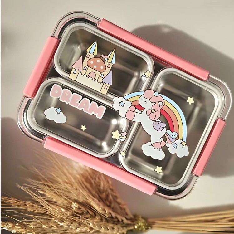ظرف غذا و لانچ باکس فانتزی دخترانه استیل سه قسمتی