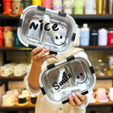 ظرف غذا لانچ باکس استیل طرح لبخند ۶ قفله