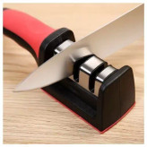 کاربردهای چاقو تیزکن 3کاره: تیز کردن چاقوهای معمولی آشپزخانه: اولین و رایجترین کاربرد این وسیله، تیز کردن چاقوهای آشپزخانه است. با استفاده از شیارهای مخصوص، چاقوهای قدیمی و کند به راحتی دوباره تیز و قابل استفاده میشوند. تیز کردن قیچی: شیار مخصوصی برای قیچی در این دستگاه طراحی شده است که به کاربران امکان میدهد تیغههای قیچی را بدون آسیبدیدگی یا نیاز به تعویض، تیز کنند. ابزارهای خاص: این تیزکن میتواند برای تیغههای خاص مانند چاقوهای سرآشپز، چاقوهای ارهای یا حتی تیغههای دندانهدار نیز به کار رود. این ویژگی باعث میشود محصول برای انواع کاربردهای حرفهای نیز مناسب باشد. نگهداری از ابزارها: علاوه بر تیز کردن، این دستگاه برای نگهداری صحیح زاویه تیغهها و جلوگیری از فرسایش ناهمگون نیز مفید است. مزایای چاقو تیزکن 3کاره: سهولت استفاده: طراحی ارگونومیک این دستگاه استفاده از آن را برای افراد مبتدی و حرفهای آسان میکند. تنها با چند حرکت ساده میتوان ابزارها را به تیزی اولیه بازگرداند. طراحی چندمنظوره: وجود سه شیار مختلف برای انواع ابزارهای برشی باعث میشود که این محصول جایگزین چندین ابزار تیزکن جداگانه شود و فضای کمتری اشغال کند. ایمنی بالا: پایههای ضدلغزش و دستههای مقاوم، استفاده از این وسیله را کاملاً ایمن میسازند. کاربران میتوانند بدون نگرانی از لغزش یا آسیب، تیغهها را تیز کنند. طول عمر بالا: مواد باکیفیت به کار رفته در ساخت این دستگاه، از جمله تیغههای سرامیکی یا الماسمانند، باعث میشوند که این ابزار ماندگاری بالایی داشته باشد.