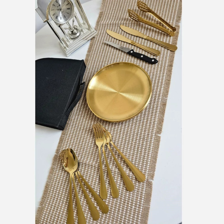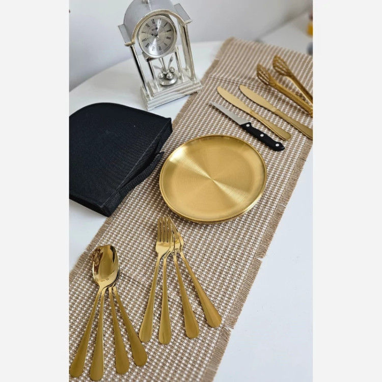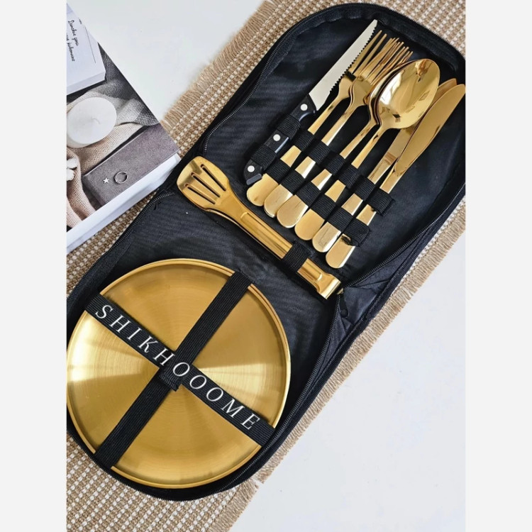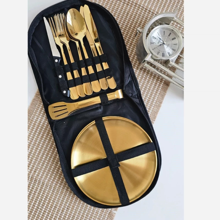 ست چهار نفره استیل غذاخوری کمپینگ طلایی