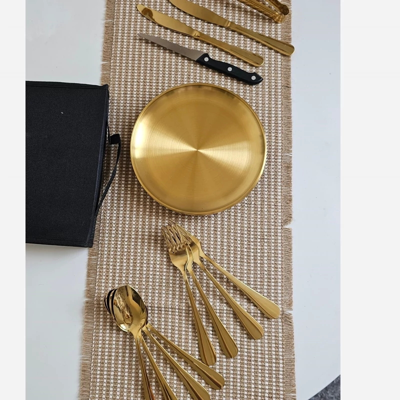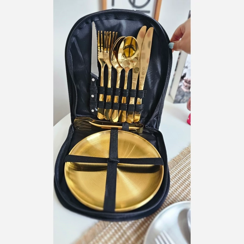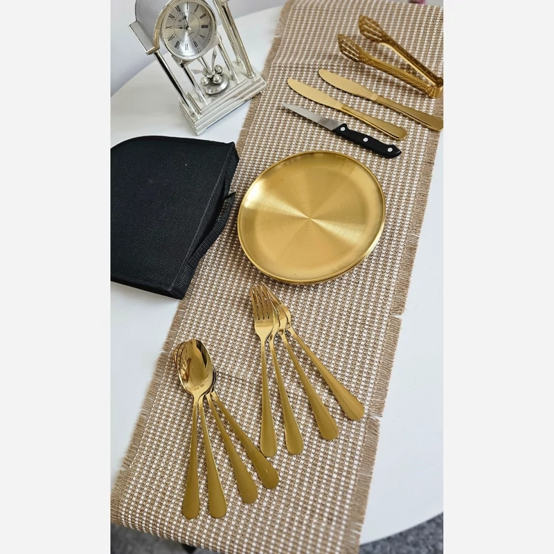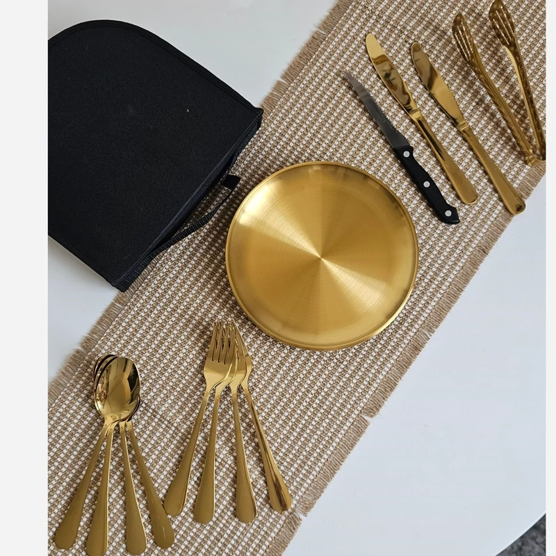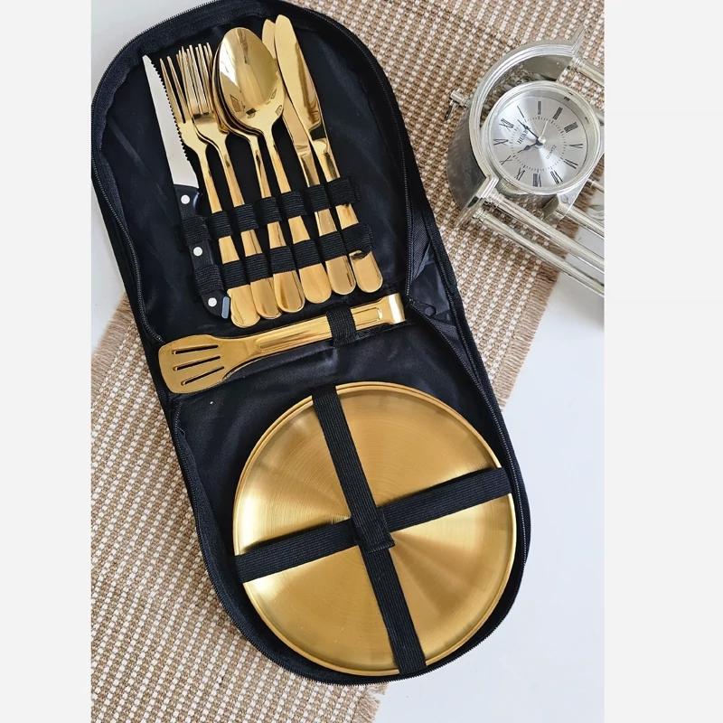 ست چهار نفره استیل غذاخوری کمپینگ طلایی