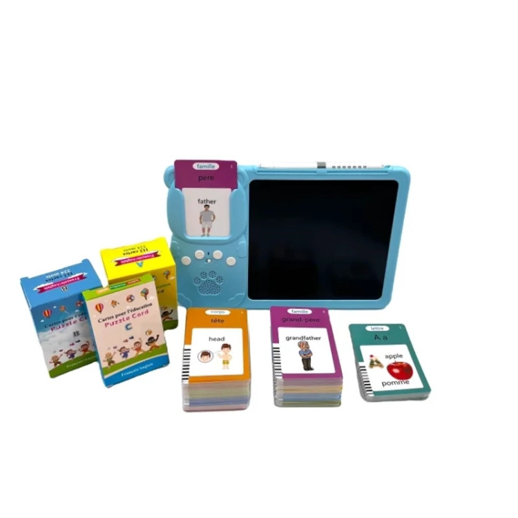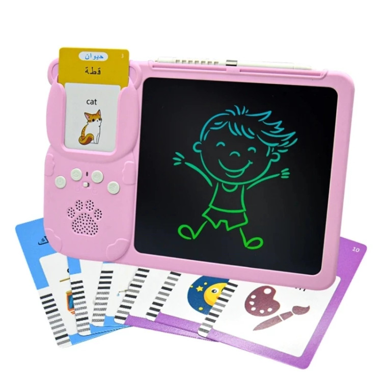 آموزش زبان انگلیسی شارژی تبلت فلش کارتخوان بهترین زمان اموزش زبان در کودکی و بصورت تصویری و فلش کارت است این بازی با دارا بودن هر 3 حالت یکی از بهترین راه اموزش است. بروری فلش کارت متن و عکس مربوط به منن نوشته شده که بعد از قرار دادن در جلی خود ان را میخواند و صدای ان را نیز در میاورد و در قسمت صفحه نیز میتواند با قلم مخصوص شکل و اسم ان را بکشد .پس هم بازی است و هم اموزش تصویر و صوت و نوشتار که در ذهن کودک نقش میبندد این مجموعه شامل 255 کارت دوطرفه است که موضوعات مختلفی از جمله حیوانات، اشیا، افعال، رنگها، اشکال، آب و هوا، وسایل نقلیه و… را پوشش میدهد. امکانات و ویژگیهای خاص 1. صداهای واقعی و شبیهسازی شده: کارتهای آموزشی این تبلت نه تنها تلفظ صحیح کلمات را به کودک آموزش میدهند، بلکه صداهای شبیهسازی شده حیوانات و وسایل نقلیه را نیز پخش میکنند. این ویژگی باعث میشود که کودک بتواند بهتر با مفهوم کلمات و صداها آشنا شود و مهارتهای شنیداری خود را تقویت کند. 2. دکمه تکرار صدا و کنترل صدا: این تبلت دارای دکمه تکرار صدا و پنج سطح تنظیم صدا است. والدین میتوانند حجم صدا را بر اساس نیاز تنظیم کنند و کودک میتواند چندین بار به صدا گوش کند تا آن را به خوبی یاد بگیرد. 3. قابلیت شارژ و مصرف بهینه انرژی: این تبلت دارای باتری قابل شارژ است و میتواند با یک بار شارژ تا 4.5 ساعت به طور مداوم کار کند. ...