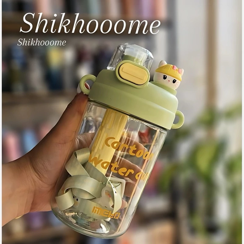 قمقمه نی دار کودک طرح کارتونی نشکن با بند و فیلتر میوه