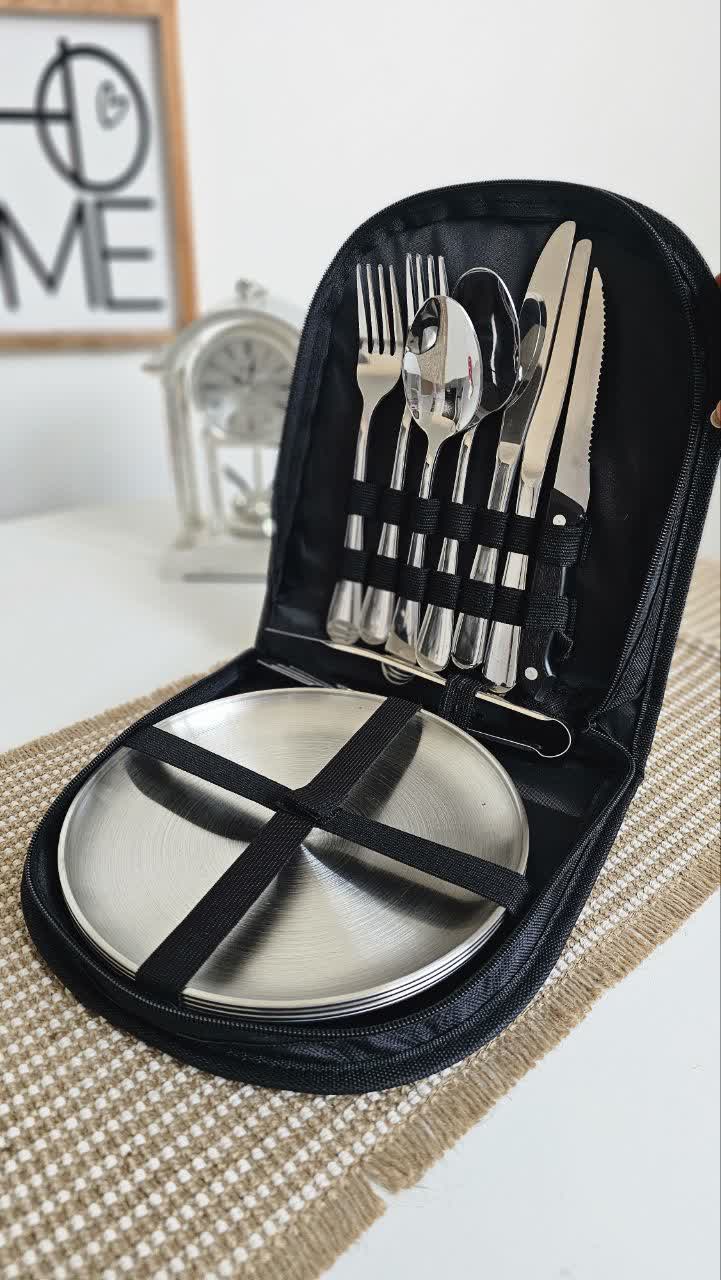 ست ظروف مسافرتی ۴ نفره استیل کیف دار