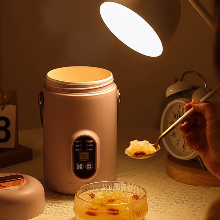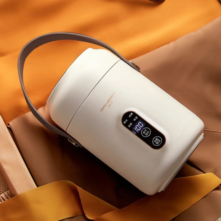 این ظرف برقی با طراحی شیک و دسته چرمی، هم برای محل کار و هم برای سفر عالیه.