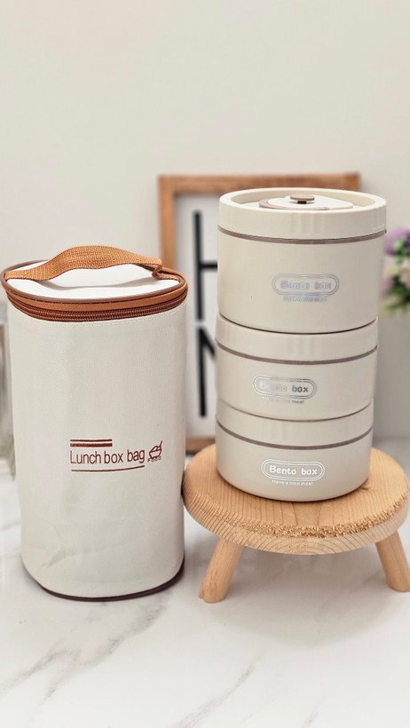 لانچ باکس و ظرف غذا سه عددی وارداتی کیف دار BENTO BOX بدون نشتی