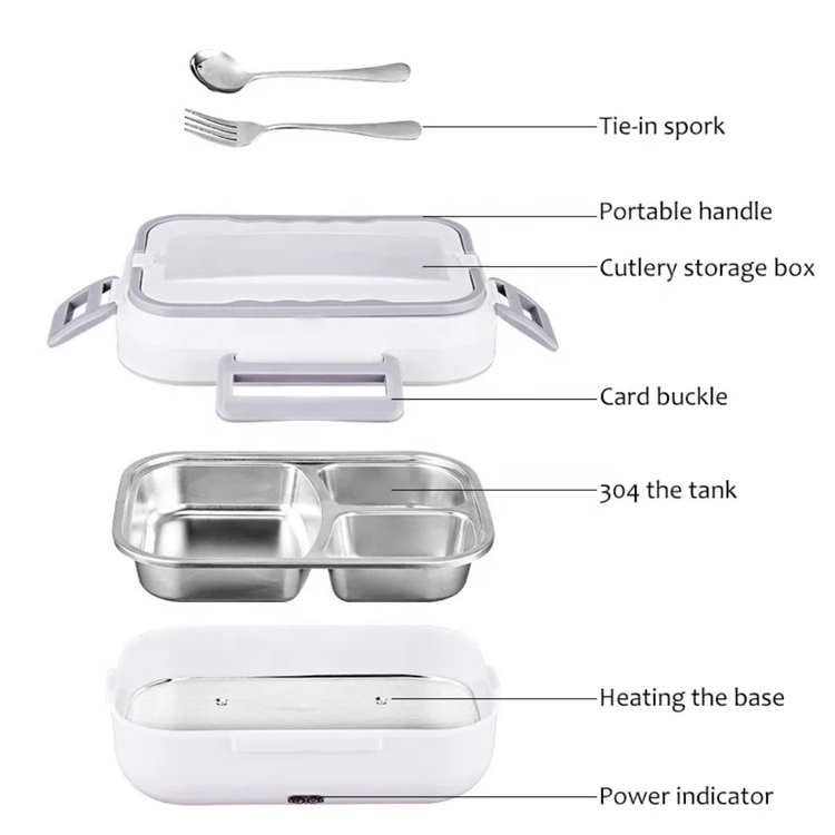دارای یک محفظه جداگانه روی درب محصول جهت قرار دادن قاشق و چنگال