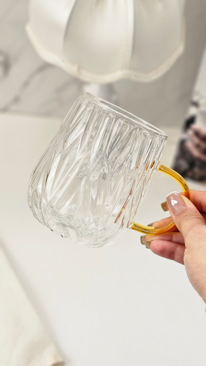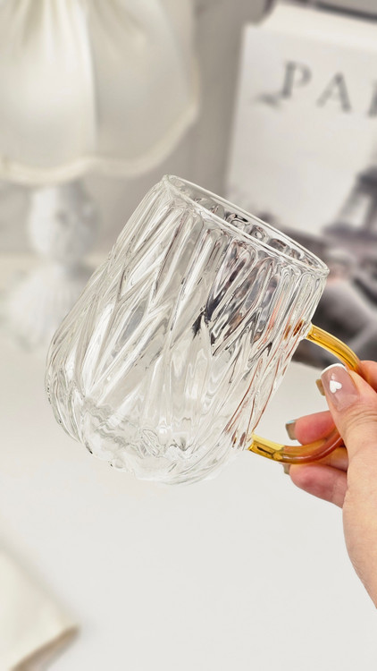 لیوان پیرکس دسته طلایی طرح نامنظم