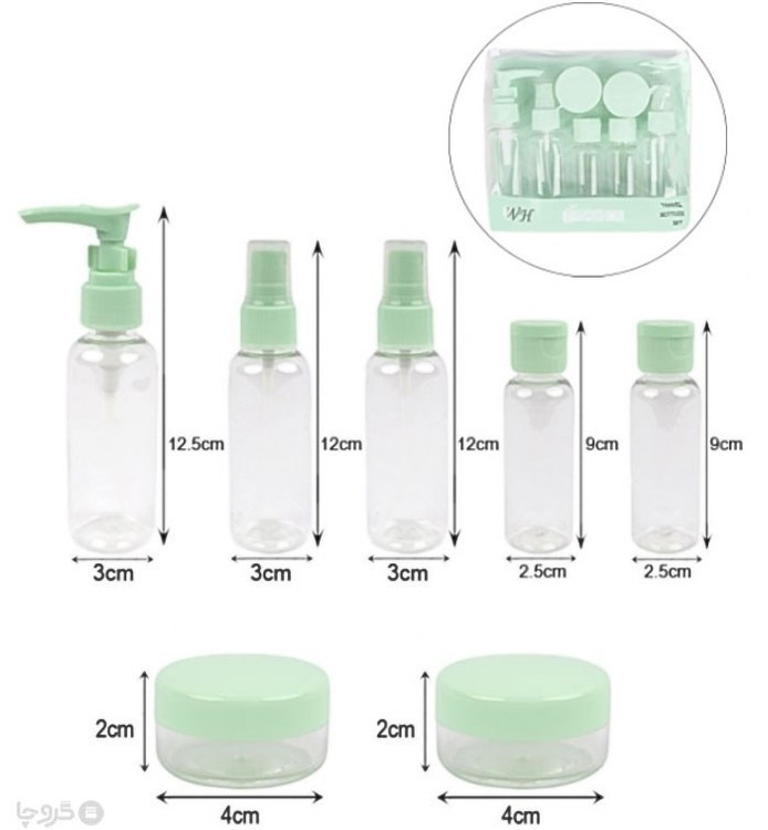 ( 2 عدد بطری،2 عدد اسپری ،1عدد ظرف پمپی،2عدد ظرف کوچک درب دار
