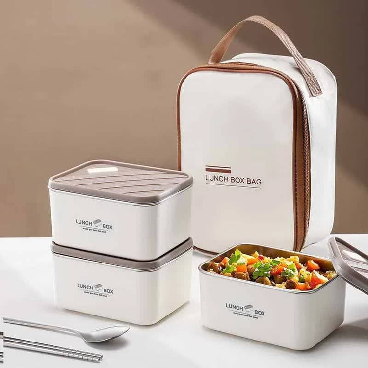 لانچ باکس استیل سهتکه مدل مستطیل + کیف غذای آلومینیومی، ترکیبی از دوام، طراحی مدرن و کاربرد فوقالعاده برای تمام موقعیتها!