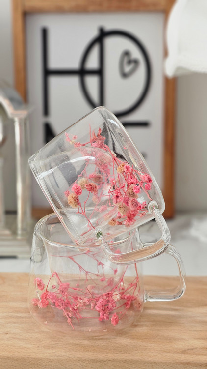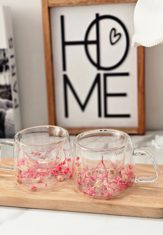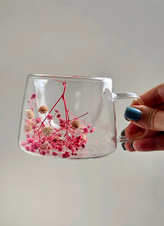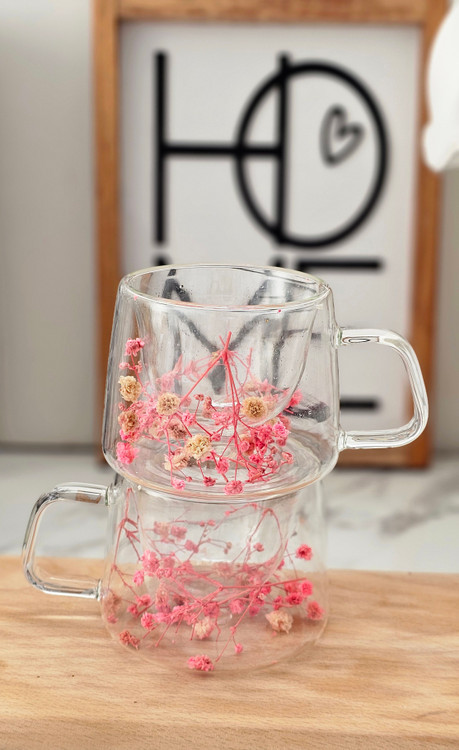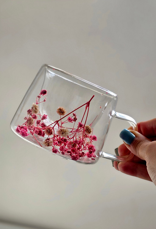 لیوان پیرکس دسته دار دوجداره گل خشک وارداتی