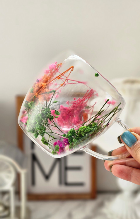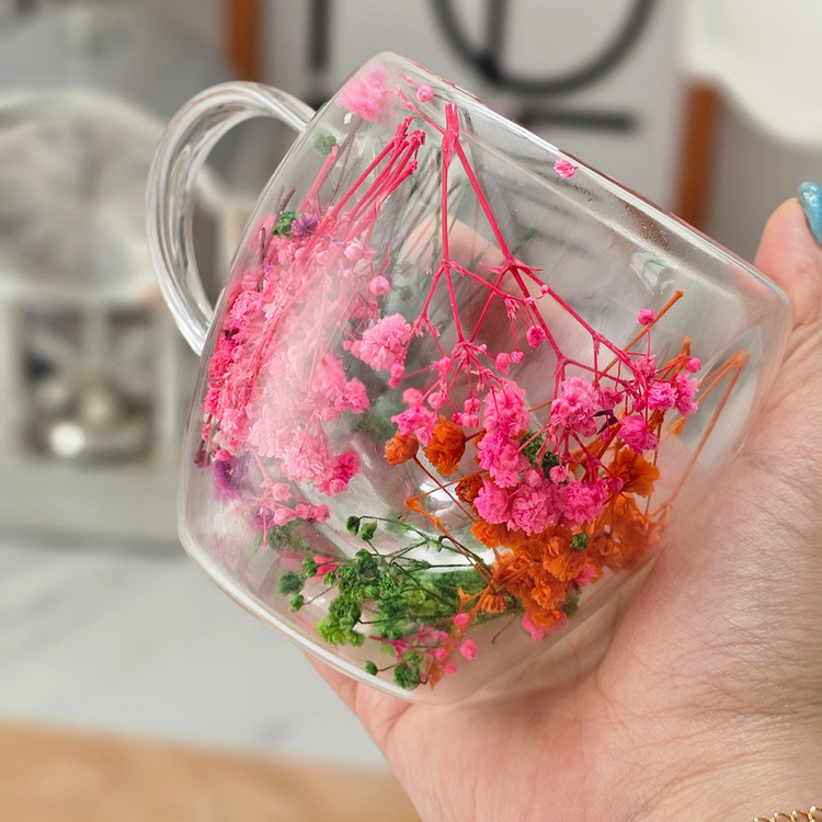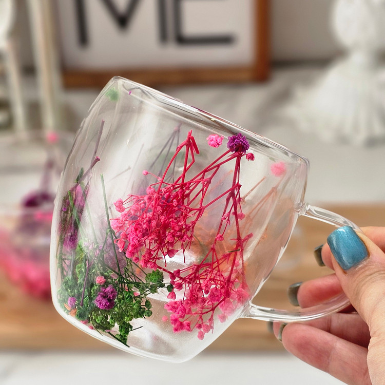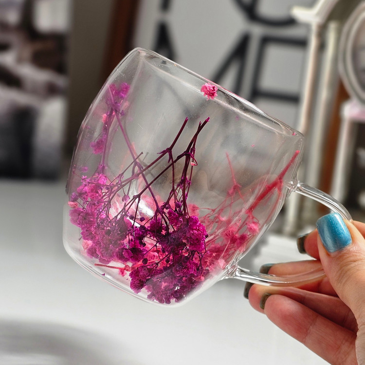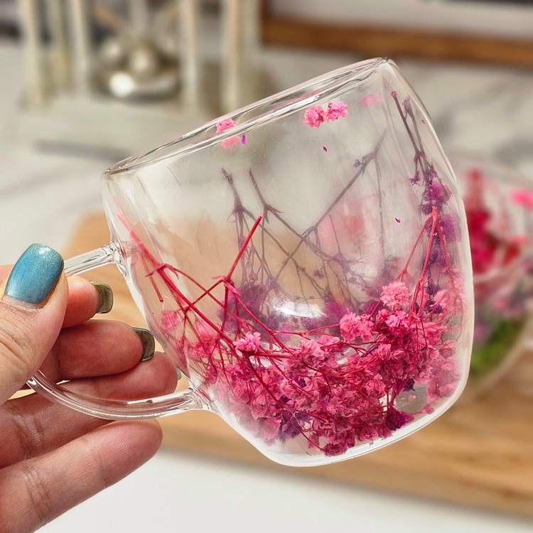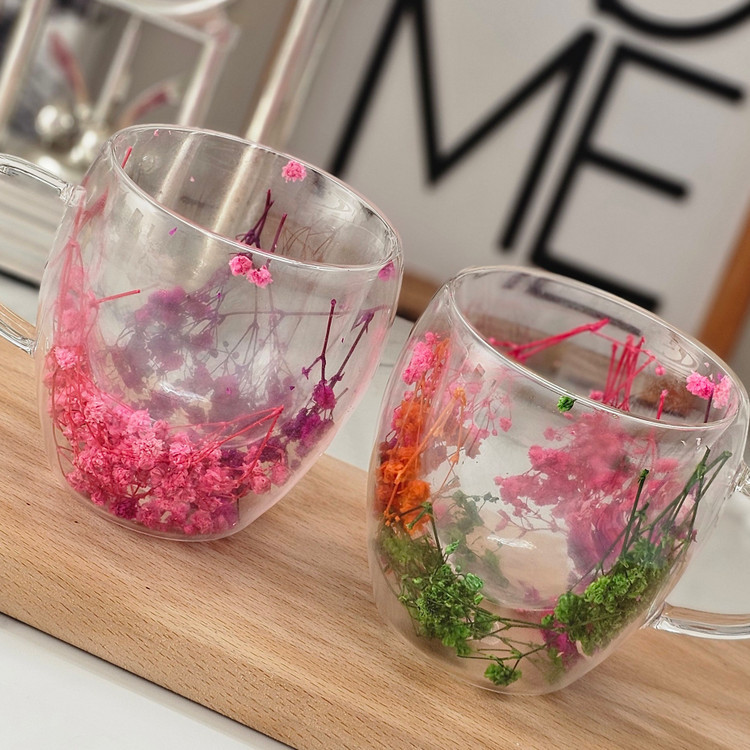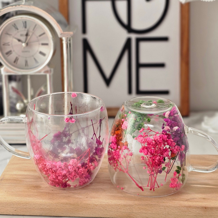 لیوان و ماگ دسته دار دوجداره گل خشک وارداتی