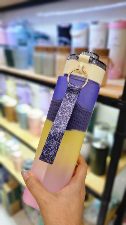 قمقمه و بطری آب نشکن ۹۰۰ میل دورسیلیکونی بدون نشتی